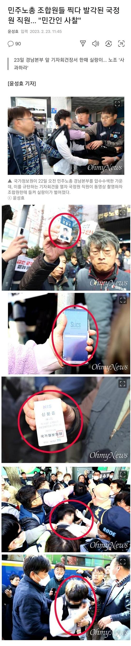 민간인들에게 걸려서 정체가 털리는 정보부 요원이 있다는 것도 한심하지만, 국정원은 지난 2017년 해외 파트 업무만 하기로 하고 국내 파트는 없앤다고 발표한 바 있습니다. 박근혜 정부의 국정농단 당시 국정원 국내 파트가 민간인을 사찰하고 이를 우병우 전 민정수석에게 직접 보고했다는 혐의가 있었기 때문입니다. 그런데 윤석열 정부에서 공안통치를 되살리고 싶은 걸까요? 대통령 취임 1년도 안 돼 국정원 직원이 민간인을 다시 사찰하고 다니는 걸 보면 말입니다.