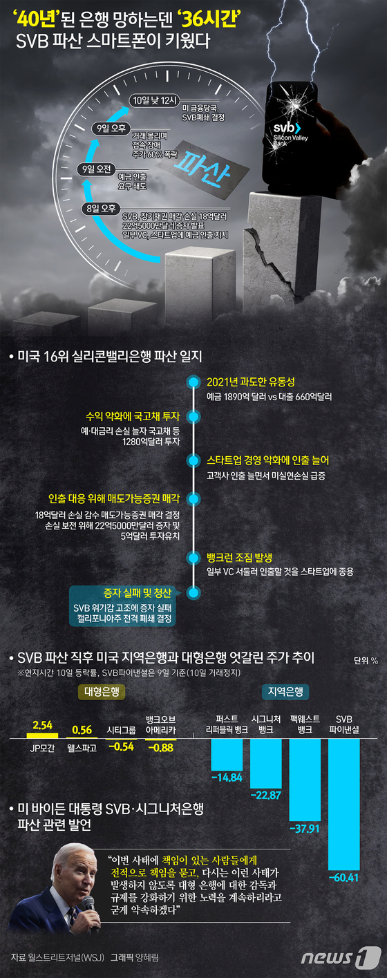 실제로 이번 뱅크런은 인터넷뱅킹과 스마트폰뱅킹으로 밤낮을 가리지 않고 과거와는 비교가 안 되는 속도로 사람들이 돈을 인출했기 때문에 발생한 일이기도 합니다. 36시간 만에 420억 달러 규모의 예금이 빠져나갔으니 말입니다.
