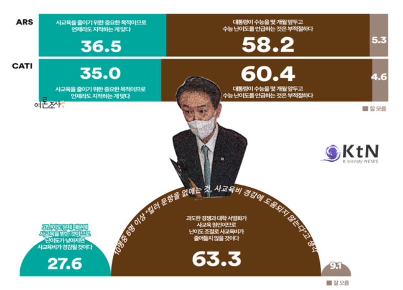 실제 수험생과 학부모의 반응은 이번 수능이 킬러문항이 나오기 전보다 더 어려워졌다는 게 대부분입니다. 그나마 이전에는 예측이라도 가능한 고난도 문제였던 반면 이번엔 예측할 수 없는 고난도 문항이라는 차이점밖에 없다고 했습니다. 수능이 끝난 이 시점에서 보면 결국 더 넓고 많은 범위의 사교육의 필요성이 커진 것밖에 없지 않으냐는 볼멘소리가 나올 수밖에 없습니다.
