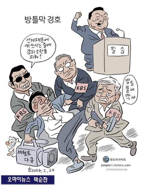 공방위는 방송의 공익성이 훼손되거나 제작·보도 책임자와 실무자 사이 갈등이 불거진 경우 이를 중재하는 노사 협의체죠. 이제원 제작1본부장이 공방위 참석을 거부하여 2월 29일에 열릴 예정이던 임시공방위가 무산됐습니다. 이에 전국언론노동조합 한국방송본부는 사 쪽이 단체협약과 편성규약을 또다시 정면 위반했다며 반발했습니다. 자, 이쯤 되면 누가 총선에 영향을 주는 행위를 하고 있는지 보이지 않습니까? KBS는 윤석열 정권의 눈치를 보며 다시 '기레기' 소리를 들으려 합니까? 더 큰 비판에 직면하기 전에 공영방송의 품격을 속히 되찾길 바랍니다. 아울러 우리는 총선을 앞두고 공권력을 휘두르는 윤석열 정부를 향해 정의의 철퇴를 내릴 때입니다.