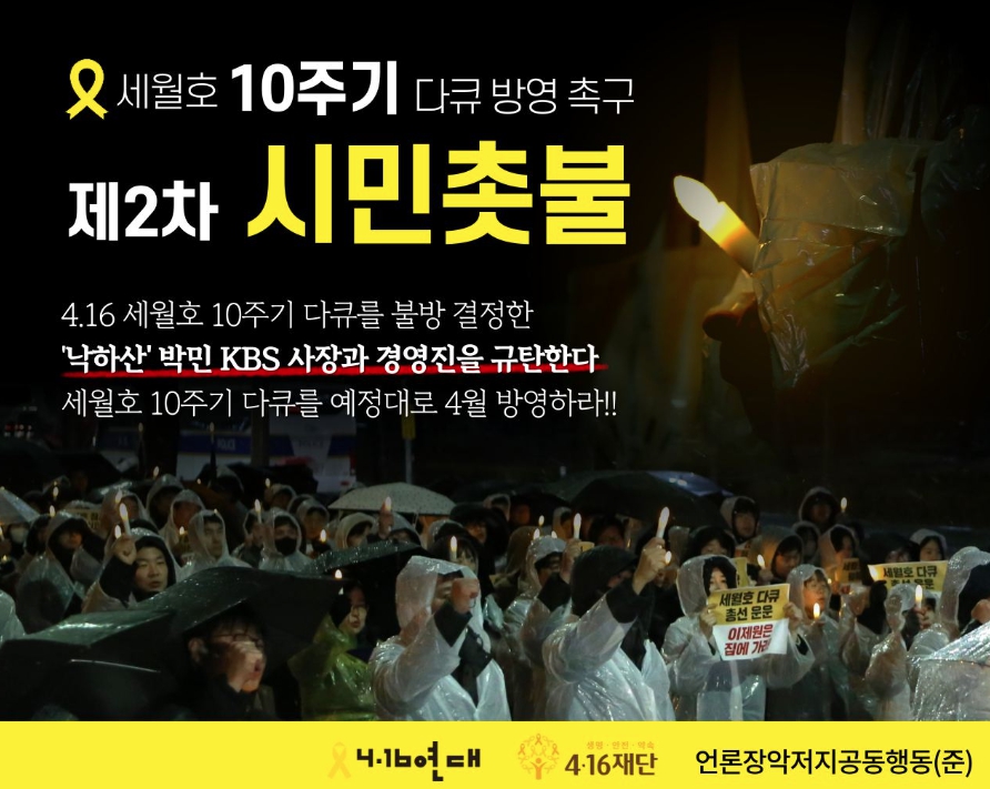 지난 2014년 7월, 세월호 참사 100일을 맞아 KBS <다큐 3일>이 제작 중이던 '세월호 유족' 관련 아이템이 기획제작국장과 부장의 지시로 중단된 일이 있었습니다. 10년이 지나 2024년 4월 18일 세월호 10주기를 맞아 방영할 예정이던 KBS <다큐 인사이트> 다큐멘터리가 총선에 영향을 줄 수 있다는 이유로 제작이 중단되는 일이 또 발생했습니다.