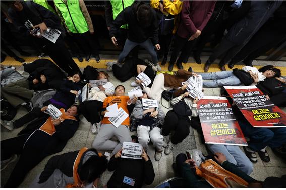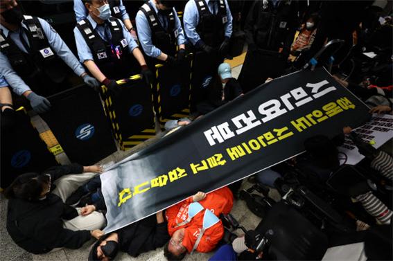 올해는 장애인들이 지하철 승강장에서 죽은 듯 드러누워 항의하는 '다이인(die-in)' 퍼포먼스를 펼쳤습니다. 이들의 요구는 슬로건처럼 '장애인도 시민으로 살고 싶습니다.'였습니다. 이들은 장애인권리보장법, 장애인탈시설지원법, 장애인평생교육법, 중증장애인노동권 보정특별법을 제정해달라며 각 정당 대표에게 면담을 요청했습니다. 또한 오세훈 서울시장이 올해 전액 삭감한 중증장애인 권리중심 공공일자리 사업의 예산 복원, 해고당한 장애인 노동자 400명에 대한 권리도 주장했습니다.