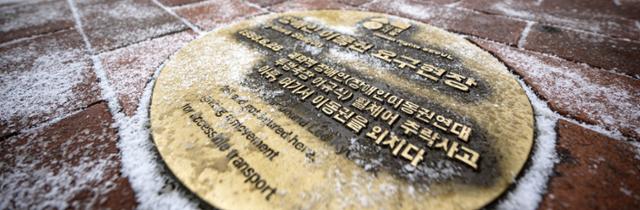 왜 이들은 서울지하철 4호선 혜화역에서 시위를 펼쳤던 걸까요? 2번 출구를 나서서 바닥을 살피면 '장애인 이동권 요구현장' 동판을 만날 수 있습니다. '1999년 6월 28일, 혜화역 장애인(이동권연대 투쟁국장 이규식) 휠체어 추락 사고 이후, 여기서 이동권을 외치다’라고 새겨져 있습니다. 중증 뇌병변 장애인인 이규식 씨는 노들야학 학생 시절이던 1999년 6월, 혜화역에 갔다가 장애인용 리프트에서 추락사고를 당한 뒤로 이동권 운동에 매진하는 활동가로 살았습니다. 이 때문에 서울지하철 4호선 혜화역은 장애인 이동권을 요구하는 투쟁의 현장으로 뜻깊은 장소죠.