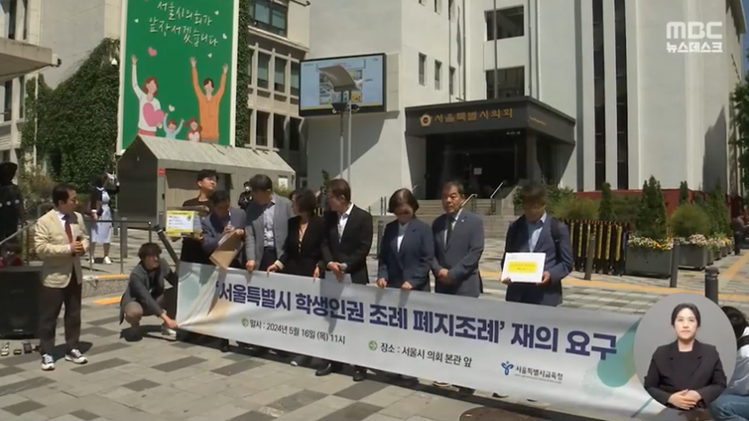 학생인권조례는 학생, 교사, 시민의 공동 노력으로 제정된 조례입니다. 2010년 경기도에서 처음 제정된 뒤 전국 광역단체 17곳 중 7곳에서 시행됐습니다. 서울특별시 학생인권조례는 제정 당시 주민조례청구 9만 8000여 명의 서명을 받아 제정됐습니다. 그런데 지난해 서이초 교사 순직 이후 윤석열 대통령과 정부가 학생인권조례를 교권 침해의 주요 원인으로 지목하자 국민의힘 주도의 충남도의회와 서울시의회가 잇따라 조례 폐지를 의결했습니다. 경기도와 광주에서도 폐지 움직임이 일고 있고요. 학생인권조례가 그 자체로 완벽한 것은 아닙니다. 다양한 이해 관계자의 의견을 청취하고, 문제를 진단한 뒤 보완하는 절차가 필요합니다. 그런데 학생들의 의견을 듣기보다는 정치권과 어른들이 정쟁의 도구로 활용하고 있는 건 아닌지 돌아봐야 합니다. 특히 국민의힘 의원으로만 구성된 인권특위가 "교섭단체 소속의원 수의 비율에 의하여 각 교섭단체 대표의원의 요청으로 의장과 협의한 후 본회의에서 선임 또는 개선한다"는 서울특별시의회 기본조례 제41조를 위반했다는 주장도 존재하는 만큼, 법적으로 따져봐야 할 점도 존재하죠. 서울교육청은 지난달 서울시의회가 폐지 의결한 '서울특별시 학생인권조례 폐지조례'에 대해 재의결을 요구했습니다.