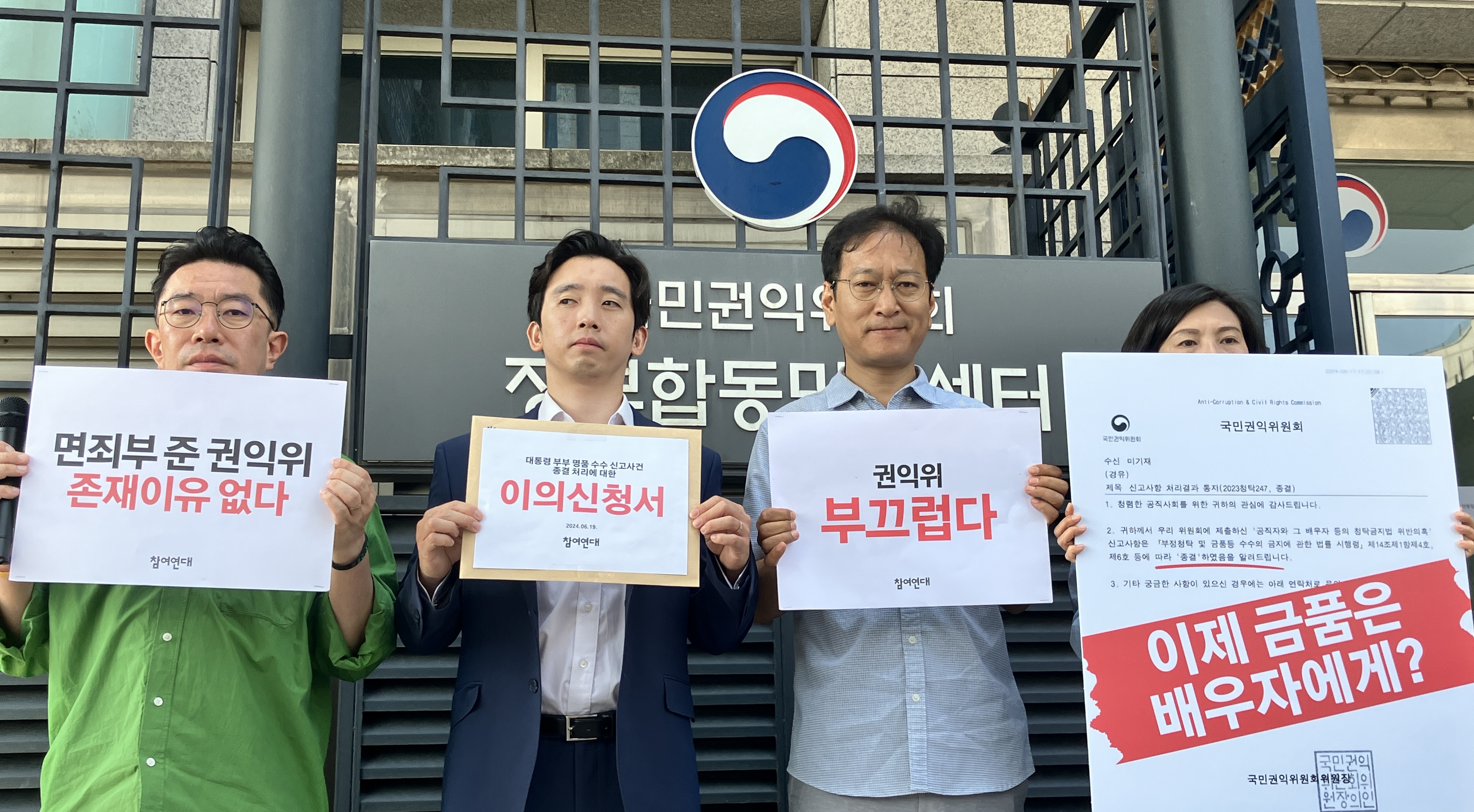 지난 6월 10일 국민권익위원회는 참여연대가 청탁금지법 위반으로 신고한 김건희 여사의 명품가방 수수 사건을 종결한다고 발표했습니다. 권익위는 김건희 여사의 명품백 수수는 "청탁금지법에 공직자 배우자 제재 조항이 없고", "대통령 직무 관련성이 없다"고 했습니다. 거기에 더해 설사 직무 관련성이 있다고 하더라도 "명품백을 준 사람이 외국인이기 때문에 대통령기록물법의 적용을 받아야 하는 사안"이고 "청탁금지법 신고 대상이 아니다"라는 유권해석을 했습니다. 작년 12월 19일 사건을 접수한 후 최장 90일로 정해진 조사 기한을 연장하기까지 했습니다만, 72초 만에 권익위의 브리핑은 끝이 났습니다. 상식을 부정하는 이 졸렬한 유권해석을 어떻게 받아들여야 할까요?