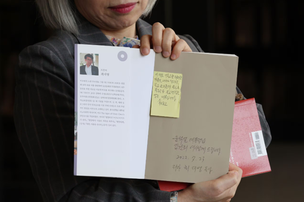 그런데 권익위는 최재영 목사가 미국 시민권자인 외국인이라서 청탁금지법 적용 대상이 아니라고 했습니다. 대통령기록물법을 적용해야 한다면서요. 최재영 목사는 2022년 7월 김건희 여사에게 책도 선물했습니다. 김 여사는 2022년 말 아크로비스타에서 한남동 관저로 이사할 때 이 책을 버렸습니다. 아크로비스타에 살고 있던 이웃사촌 권성희 변호사가 아파트 분리수거장에서 이 책들을 주웠다고 했으니까요. 권 변호사가 습득한 책에는 최재영 목사가 "윤석열 대통령님 김건희 여사님께 드립니다. 2022. 7. 23 저자 최재영 목사"라는 문구가 쓰여 있었습니다.