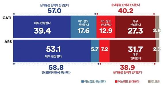 이런 사달이 난 것은 총선으로 심판을 받고도 사리를 분별하지 못하는 윤석열 대통령과 주구들에게 일차적인 책임이 있습니다. 무엇 하나 바뀐 게 없으니 탄핵 청원에 국민이 관심을 쏟는 겁니다. 그런데 한덕수 국무총리는 이번 탄핵 청원에 대해 전혀 동의할 수 없다고 했고 대통령실은 명백한 위법 사항이 드러나지 않는 한 탄핵이 가능하다고 보지 않는다고 했습니다. 국민들에게 '그런다고 늬들이 어쩔 건데?'라는 듯한 태도입니다. 여론조사기관 꽃의 여론조사 결과를 보면 국민의 58.8%가 윤석열 탄핵을 요구하고 있고, 반대는 38.9%에 불과합니다.