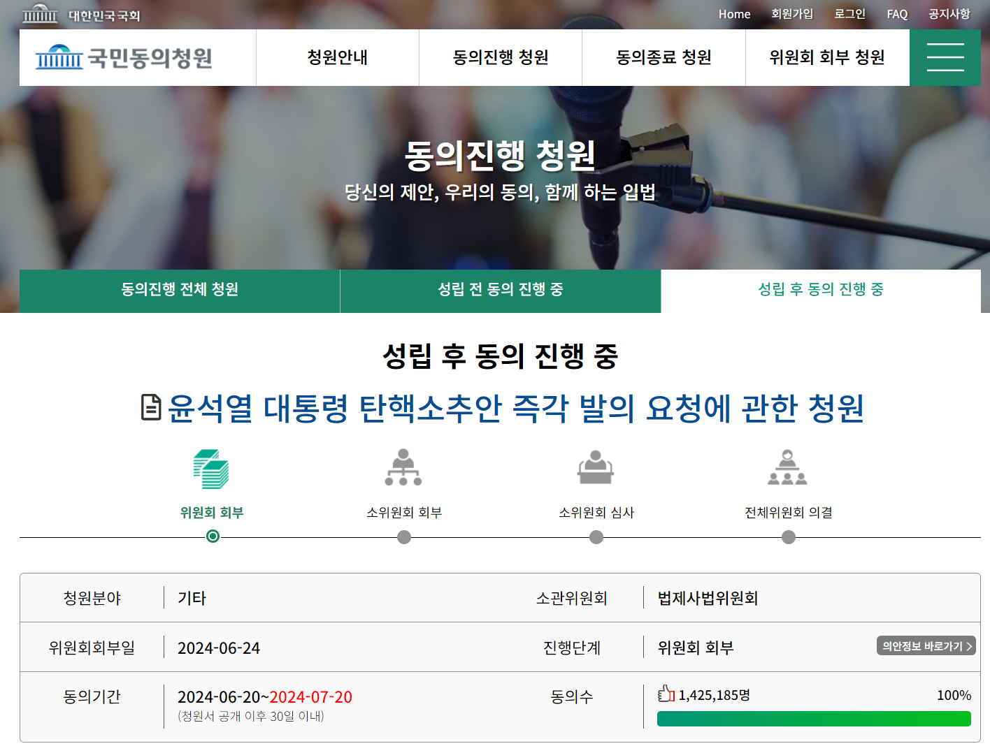 윤석열 탄핵 국회 청원에 동의한 국민이 142만 5000명을 돌파했습니다. 국회에서는 윤석열과 그 일당에 대한 청문회를 준비하겠다고 밝혔죠.