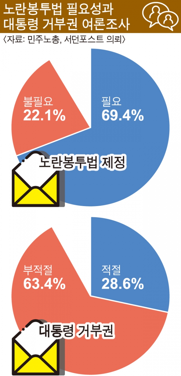 더불어민주당 등 야당이 지난 18일 국회 환경노동위원회 안건조정위원회에서 노란봉투법을 단독으로 통과시켰습니다. 국민의힘 소속 안조위 위원들은 반발하며 퇴장했고요. 앞서 국민의힘은 민주당이 환노위 소위에서 노란봉투법을 단독으로 가결하자 이견이 큰 안건을 심사하기 위해 구성되는 안조위 회부를 신청했는데요, 노란봉투법이 안조위를 통과한 만큼 다음에 열리는 환노위 전체회의에 상정, 통과될 가능성이 높아졌습니다. 모든 노동자에 대한 차별 없는 권리 보장은 당연히 추구해야 하는 사회적 화두죠. 21대 국회에서 윤 대통령의 거부권 행사로 폐기됐던 법안인 만큼 필요성에 대한 국민들의 강한 의지가 필요한 때입니다.