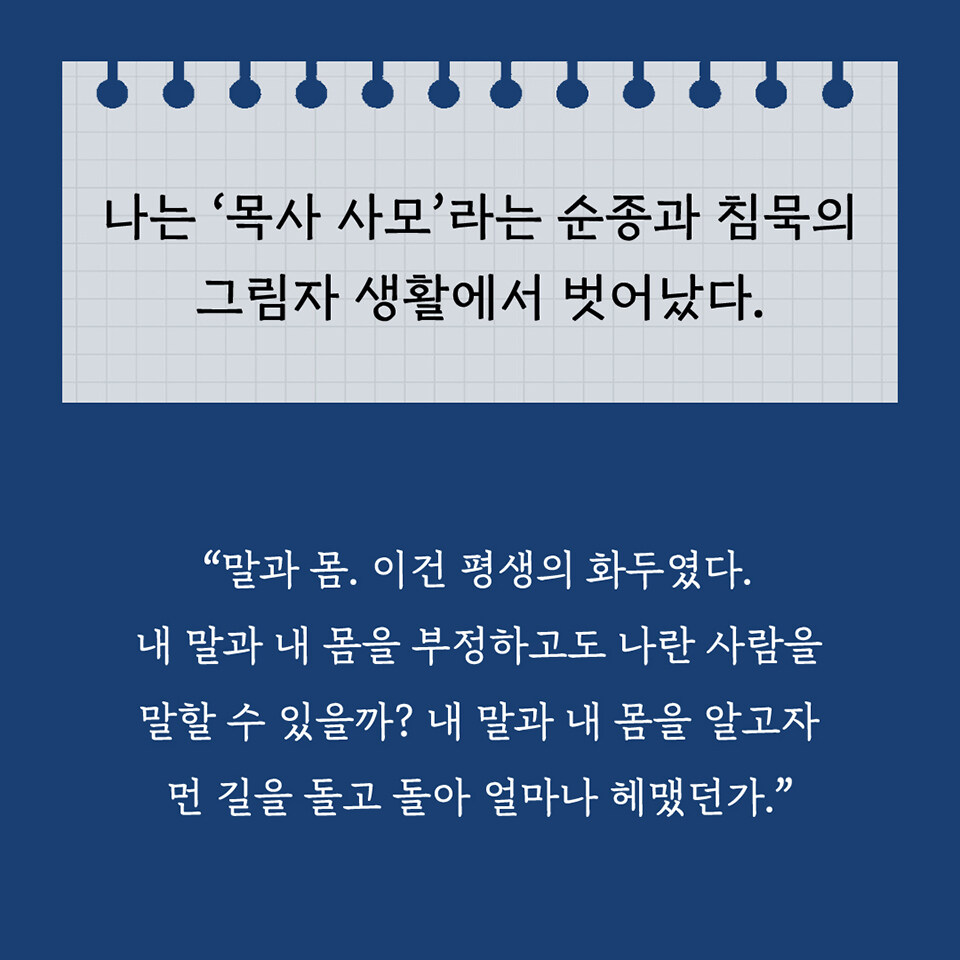 순종과 침묵의 그림자 생활에서 벗어나 자기 목소리를 찾은 목사 사모 이야기