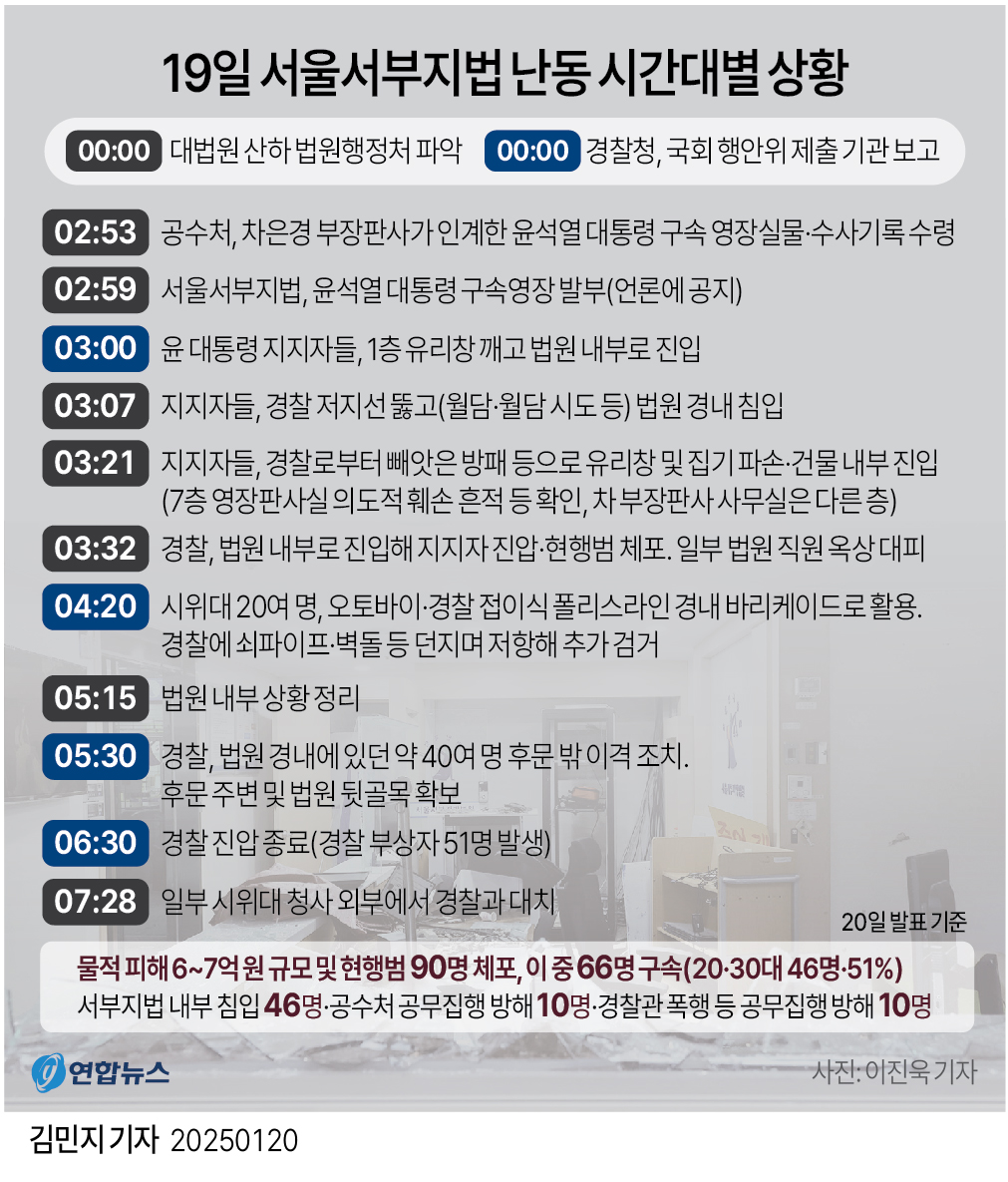 1.19 서부지법 폭동 사태를 일으킨 폭도들 가운데 지난 22일까지 58명이 구속됐습니다. 체포된 이들 중 미성년자 2명 정도를 제외하고 대부분이 구속된 건데요. 경찰은 현장 영상을 바탕으로 도망간 폭도들을 끝까지 추적해 모두 구속 수사한다는 방침입니다.
