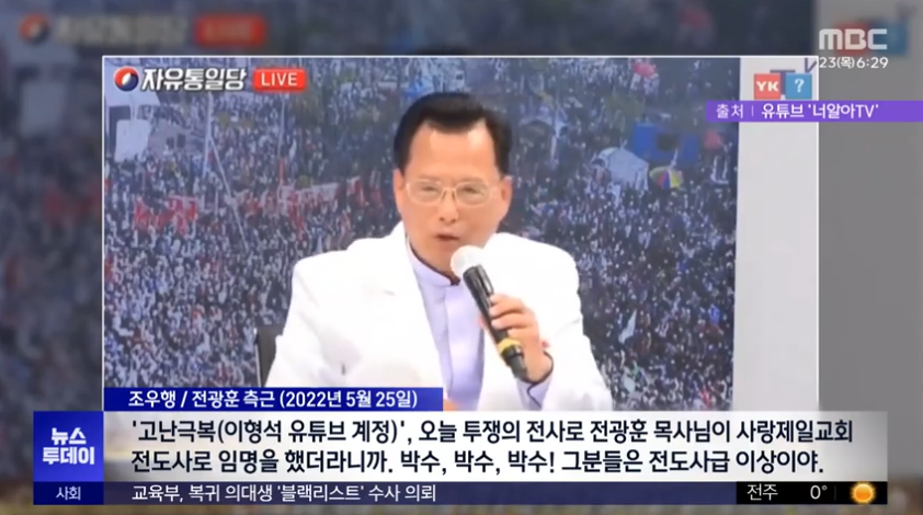 보수 정치인들은 왜 전광훈 같은 사람과 손을 잡으려 할까요? 너무 뻔한 답이지만, 표가 되기 때문입니다. 윤석열 정부 들어 전광훈의 입김이 특히 커졌습니다. 2022년 3분기와 4분기에 전광훈은 자신의 지지자들에게 입당을 재촉해 2023년 3월에 있던 국민의힘 제3차 전당대회에서 눈에 띄는 영향력을 보였기 때문입니다. 자신이 운영하는 유튜브 채널들의 구독자 수가 50만을 넘으므로 세뇌당한 열성 지지자들이 당원으로 가입했다면 엄청났겠죠. 일각에서는 국민의힘 내에서 전광훈계 당원이 20만 명이라거나 책임당원만 8만 명이라는 얘기까지 나온다고 합니다.