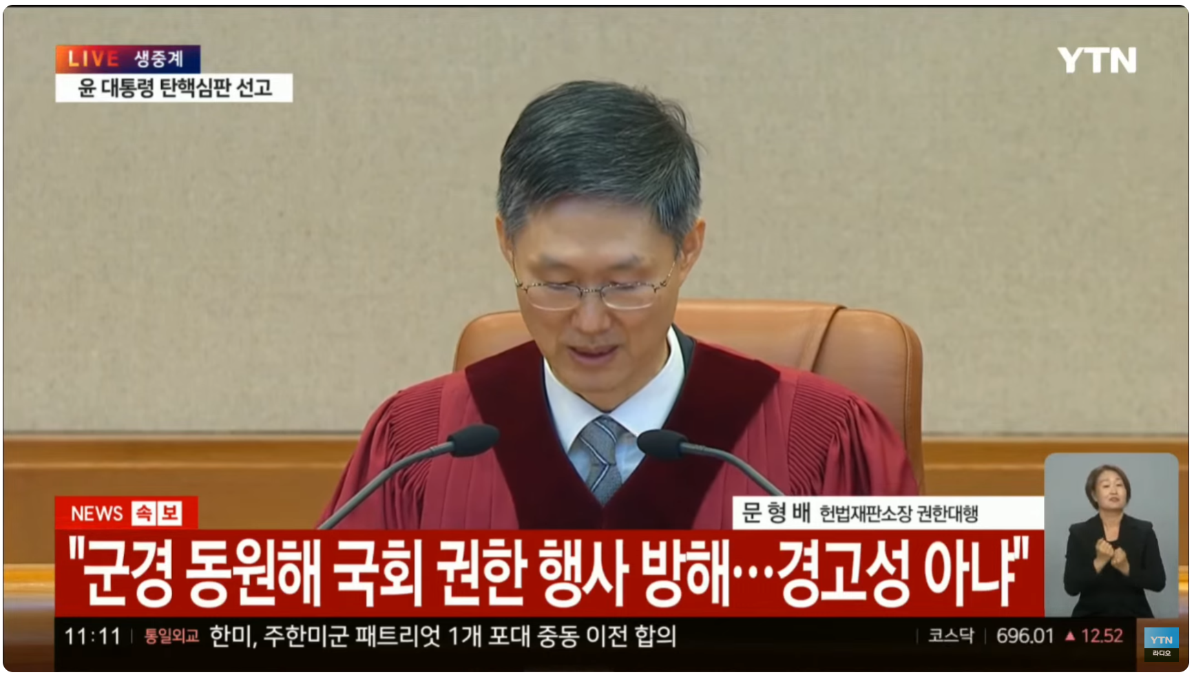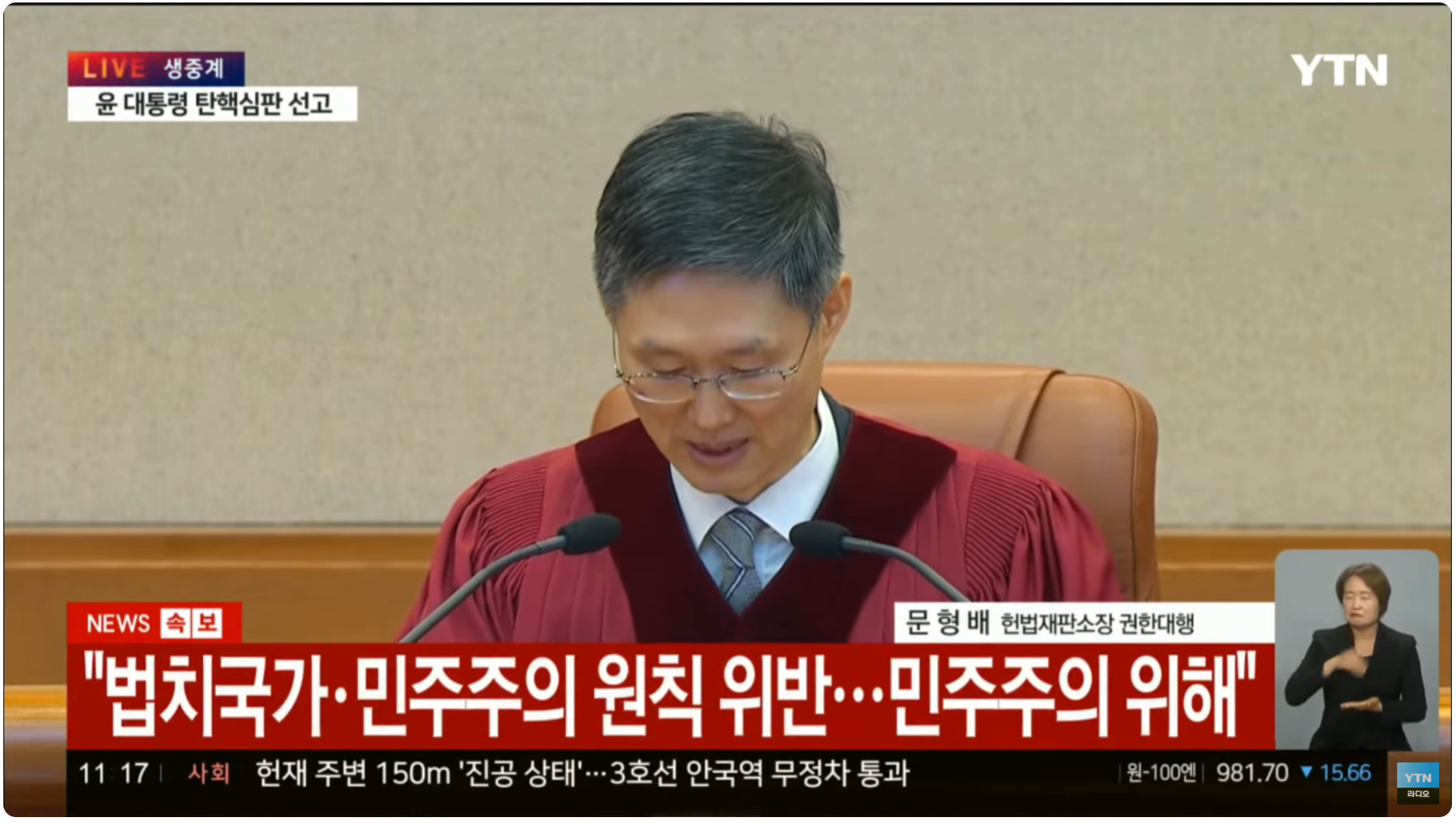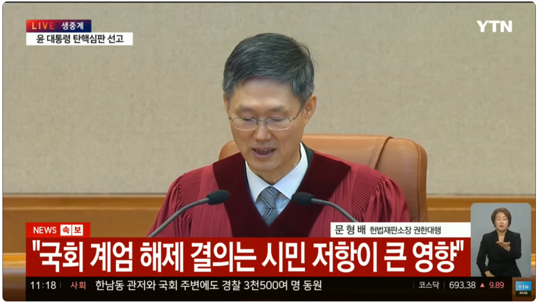이번 윤석열 탄핵소추안 결정문은 역대 탄핵 결정문 중 가장 길었습니다. 총 114쪽, 약 9만 2000자에 달했기 때문입니다. 노무현 전 대통령 탄핵 때 61페이지, 박근혜 때 89페이지였던 걸 생각하면 이번 윤석열이 저지른 '비상계엄'이라는 패악은 법률적으로도 판단해야 할 것이 많았다는 뜻이겠죠. 문형배 헌법재판소장 권한대행이 11시 정각부터 낭독한 결정문은 그간 논란의 중심이 됐던 탄핵심판 쟁점에 대한 윤석열의 망상어린 주장을 조목조목 반박했습니다.