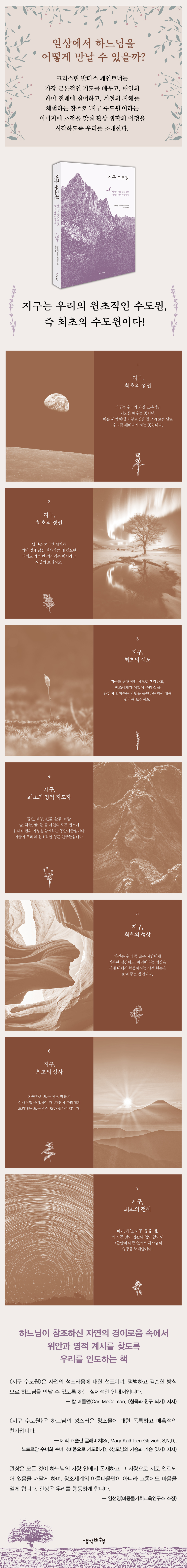 이런 지점에서 《지구 수도원》은 자연의 성스러움에 대한 선포이며, 평범하고 겸손한 방식으로 하느님을 만날 수 있도록 하는 실제적인 안내서가 되어 준다.
