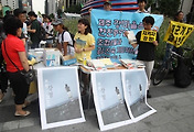 두리반 입구에서 강정마을 해군기지 건설을 반대하는 서명을 받고 있습니다.