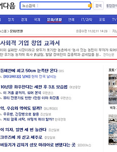 《사회적기업 창업 교과서》가 포털 Daum 메인에 소개되었습니다 안녕하세요. 생각비행입니다. 생각비행으로서 매우 기쁜 소식이 있어서 이렇게 포스팅을 작성합니다. 생각비행의 책 《사회적기업 창업 교과서》가 Daum 메인에 소개되었습니다. 를 소개한 기사는 《전자신문》서한 기자님께서 써주신 리뷰기사였습니다. 그 내용을 조금 소개합니다. (기사 전문 : [북스 클로즈업]사회적 기업 창업 교과서) 우선 기사 첫머리에선 현재 한국에서 성공한 모델의 사회적기업을 언급합니다. 유기농 농자재 회사 흙살림, 세계적인 수준의 제품을 생산하는 동천모자, 우리밀 과자 업체 위캔, 자유로운 사람들이 모여 그들의 꿈을 이뤄가는 노리단, 친환경 청소용역업체 함께일하는세상이 바로 그런 곳이죠. 그리고 사회적기업의 창시자인 빌 드레이튼 아쇼카 회장과 경제학자 슘페터가 이야기하는 사회적기업의 의미를.. 2011. 2. 11.